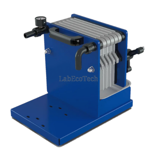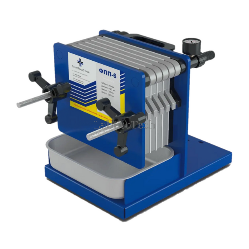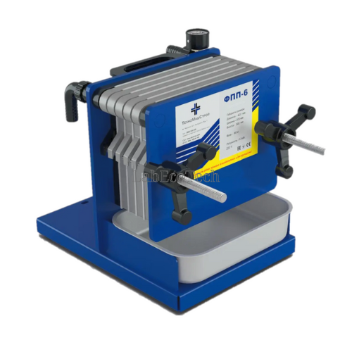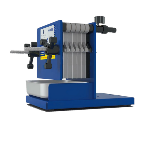 Prasa filtracyjna wyposażona jest w manometr i zbiornik zbierający ciecz.