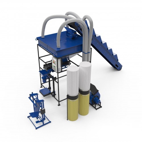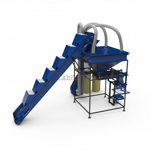 przez dmuchawy. Na wylocie zbiornika zainstalowany jest mini przenośnik, a