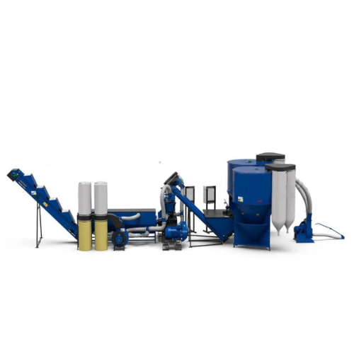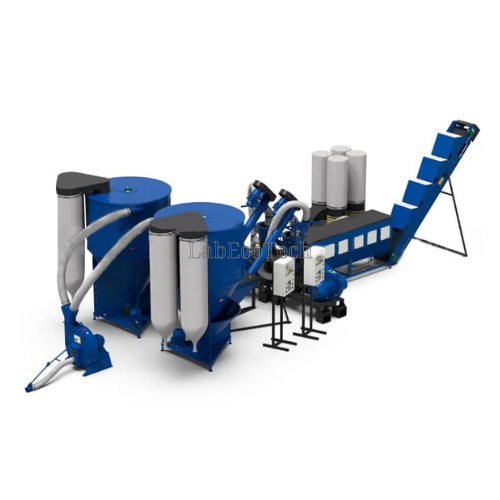 System odciągowy VP-4: to urządzenie za pomocą wentylatora chłodzi granulki i zapewnia cyrkulację powietrza potrzebnego do zebrania skalibrowanych pozostałości surowców i pyłu do pojemnika w postaci zainstalowanego w nim opakowania. Moc wynosi 4 kW.