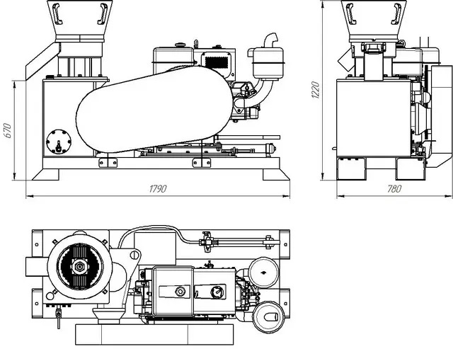 Peleciarka GRAND-300 Diesel to wydajne i niezawodne urządzenie do produkcji pelletu opałowego oraz granulacji pasz, stworzone z myślą o miejscach, w których dostęp do energii elektrycznej jest ograniczony. Maszyna napędzana jest silnikiem Diesla o mocy 30 KM, co zapewnia pełną niezależność od sieci elektrycznej i stabilną pracę w każdych warunkach.