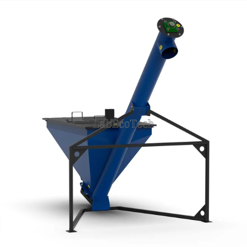 Podajnik ślimakowy LabEcoTech MTZ-200 zapewnia bezproblemowe, ciągłe dostarczanie surowców do granulatorów i innych urządzeń. Pojemność zbiornika wynosi 0,2 m³. Sterowanie podawaniem surowca odbywa się za pomocą przetwornicy częstotliwości (opcja). Urządzenie składa się z rury nośnej z wewnętrznym ślimakiem oraz zbiornika z mieszadłem na surowiec. Podajnik ślimakowy jest również częścią urządzeń do produkcji pelletu i paszy MLG-500 COMBI, MLG-1000 COMBI i MLG-1500 COMBI.