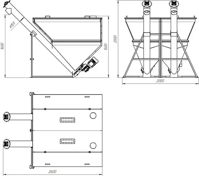 Konstrukcja urządzenia obejmuje rurę transportową z umieszczonym wewnątrz ślimakiem oraz zbiornik z mieszadłem zapewniający równomierne dozowanie surowca.