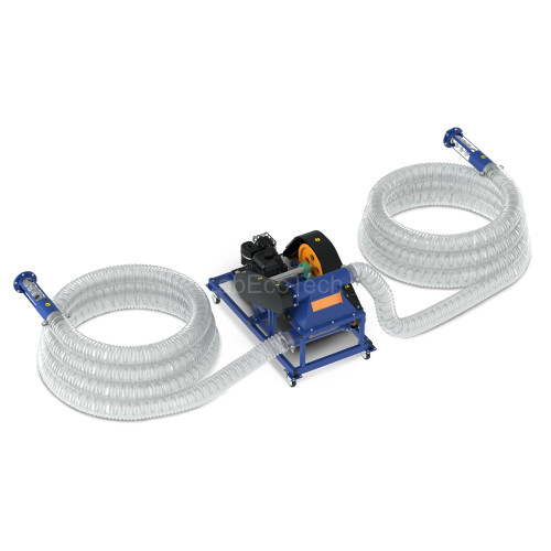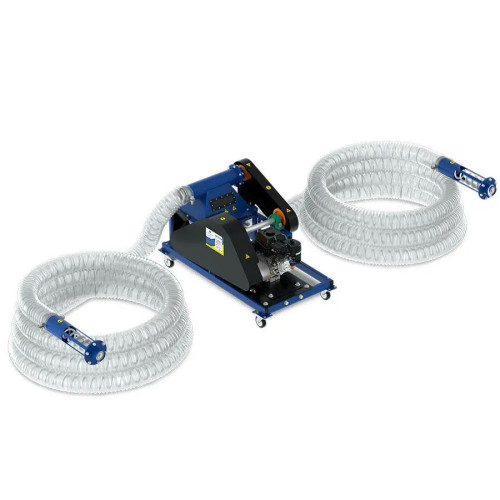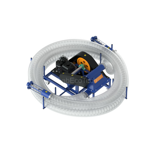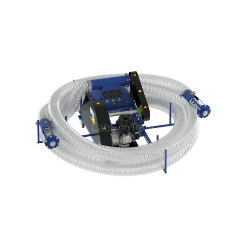 Przenośnik opiera się na ruchu spirali ślimakowej umieszczonej wewnątrz elastycznej, wzmocnionej rury poliuretanowej. Silnik spalinowy o mocy 6,5 KM wprawia spirale w ruch, umożliwiając płynne przemieszczanie materiału od punktu zasysania do wylotu. Specjalna końcówka pozwala precyzyjnie kierować transportowanym surowcem, co zwiększa efektywność załadunku i rozładunku.