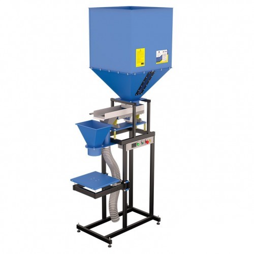 pusty worek pod tacą zbierającą i naciskając pedał dozuje ważoną porcję do
