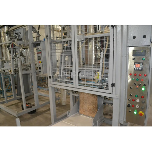 Linia przeznaczona jest do pakowania pelletu, paszy granulowanej, wypełniaczy do toalet i ściółki dla zwierząt do worków polimerowych za pomocą maszyny pakującej.
