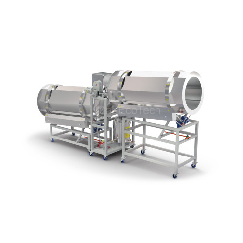 W momencie przepływu produktu z bębna nr 1 do bębna nr 2, za pomocą modułu UWD-2 aplikowane są suche składniki. Urządzenie umożliwia bardzo precyzyjne dozowanie (z dokładnością do 0,2%), co pozwala na równomierne rozprowadzenie dodatków bez strat materiału. UWD-2 może pracować niezależnie lub w pełnym zestawie – w zależności od potrzeb produkcyjnych.