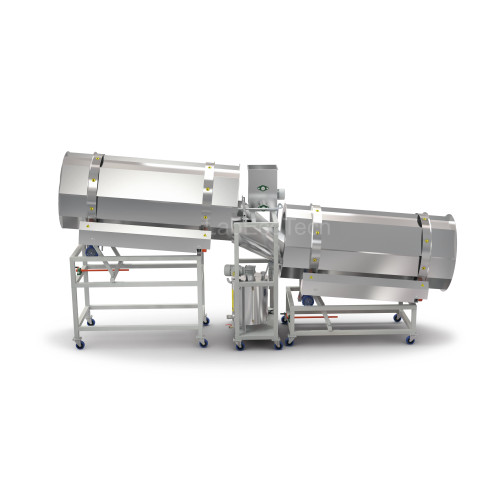Produkt trafia do drugiego bębna, gdzie suche składniki są delikatnie i dokładnie wymieszane z wcześniej nawilżoną karmą. Duża średnica bębna (900 mm) i możliwość regulacji jego parametrów zapewniają łagodne mieszanie bez uszkadzania struktury produktu.